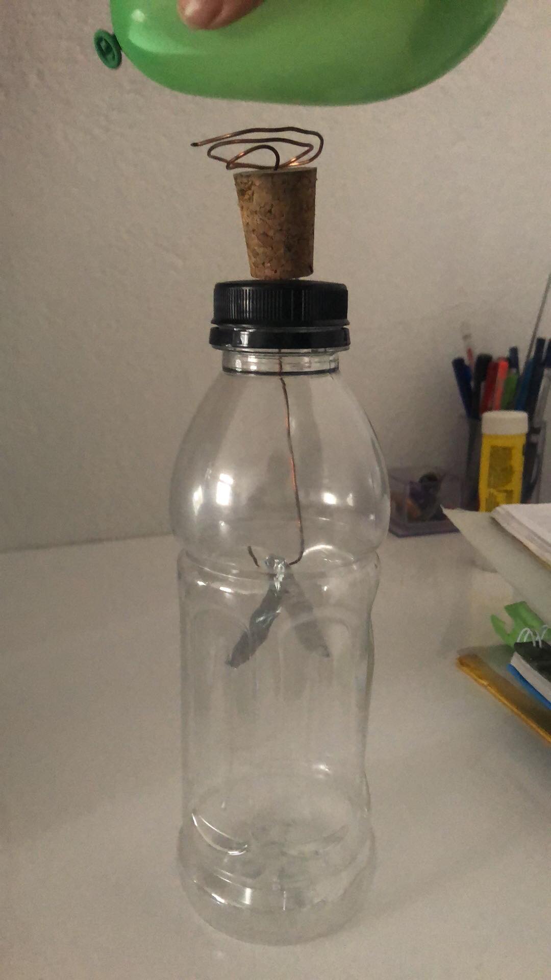 El electroscopio consiste en una varilla metálica vertical que tiene una esfera en la parte superior y en el extremo opuesto dos láminas de aluminio muy delgado.